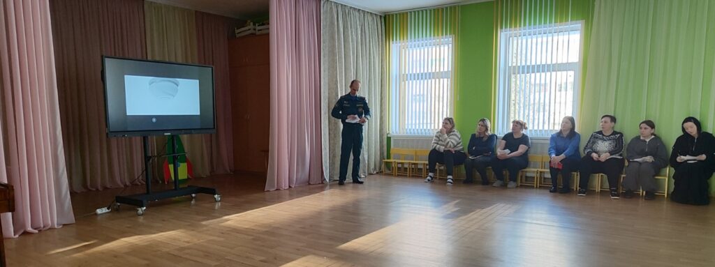 В ГУО «Детский сад №38 г. Могилева» прошла встреча с сотрудником Могилёвского городского отдела по чрезвычайным ситуациям, Дашкевичем Д.А. . Тема выступления: «О состоянии пожарной опасности в области». Беседа сопровождалась показом видеороликов, ответами и вопросами между выступающим и слушателями.