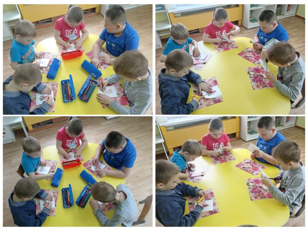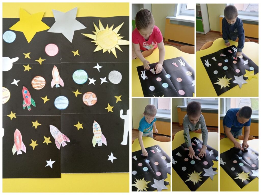 А так — же занимались художественным творчеством: рисовали и вырезали, для того, чтобы создать космическое пространство со звездами и планетами.