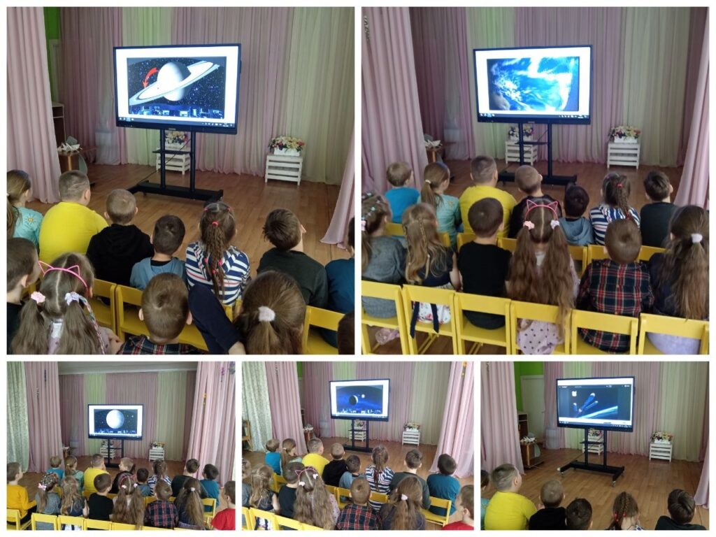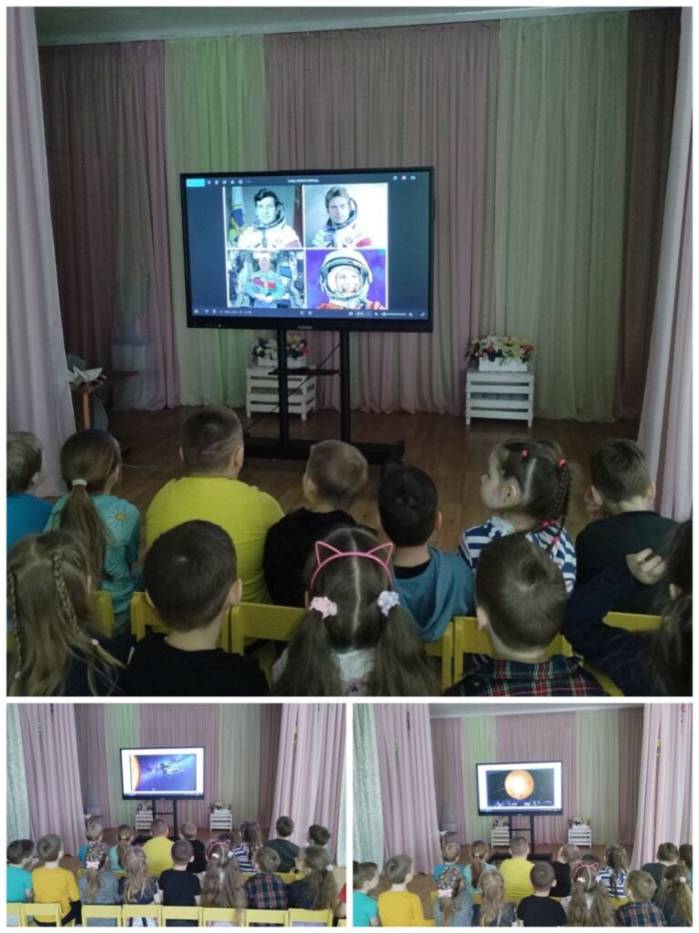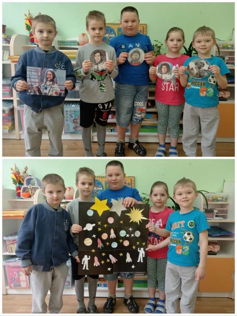 Тема космоса всегда интересна детям. В течение всей недели с 08.04. по 12.04. мы с ребятами беседовали о звездах, планетах, космосе и космонавтах. Рассматривали картины, отгадывали загадки, играли, смотрели презентации, слушали рассказы о первом полете Юрия Гагарина.